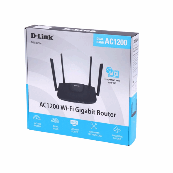دی لینک یکی از برند های معتبر در زمینه تولید انواع تجهیزات شبکه می باشد که با توجه به کیفیت بالایی که محصولات تولید شده توسط این برند دارد، توانسته بازار خوبی را به برند خود اختصاص دهد. روتر DIR-825M AC1200 از برند D-Link که برای مواردی مانند افزایش پوشش دهی محدوده شبکه بی سیم و یا به عنوان تقویت کننده از آن استفاده می شود. این دستگاه با استاندارد 802.11ac کار می‌کند و سرعتی تا ۱۲۰۰ مگابیت بر ثانیه ارائه می‌دهد. این سرعت از دو باند جداگانه تأمین می‌شود که باند ۲.۴ گیگاهرتز با ۳۰۰  مگابیت بر ثانیه و باند ۵ گیگاهرتز با ۸۶۷ مگابیت بر ثانیه می باشد. باند اول برای کارهای ساده مثل وب‌گردی یا چت مناسب است، اما باند دوم برای استریم ویدئوهای باکیفیت و بازی‌های آنلاین طراحی شده. این دوبانده بودن باعث می‌شود چندین دستگاه همزمان بدون افت سرعت به شبکه وصل شوند. دارای 4 عدد پورت شبکه می باشد که سرعت پورت های ارتباطی ۱۰/۱۰۰/۱۰۰۰ مگابیت بر ثانیه می باشد و همچنین از 4 آنتن با قدرت 5dBi  بهره مند است.