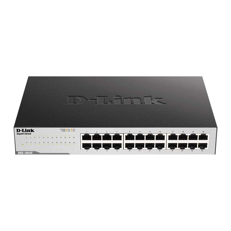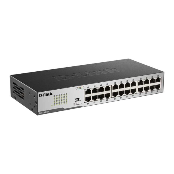سوئیچ DGS-F1024 دسکتاپ گیگابیتی 24 پورت از برند DLINK است که دارای ۲۴ پورت اترنت با قابلیت 10/100/1000Mbps است که غیر مدیریتی بوده و نیاز به پیکربندی پیچیده ندارد و با قابلیت Plag and Play نصب آسانی دارد. دارای فناوری QoS می باشد که به بهبود عملکرد در هنگام بازی یا استفاده از تلفنی اینترنتی (VoIP) کمک میکندو قابلیت Auto MDI/MDIX که امکان اتصال آسان بدون کابل های اضافه و پیچیده را فراهم می سازد. طراحی بدون نیاز به فن را دارد که باعث بی صدا بودن این محصول هنگام کار می شود. تشخیص خودکار اتصال کابل و تطبیق خودکار بین کابلهای تقویتکننده و تجهیزات شبکه، این سوئیچ را به یک گزینه ساده و کارآمد برای شبکههای کوچک و متوسط تبدیل میکند. ظرفیت سوییچ کردن در این محصول ۴۸Gbps می باشد.