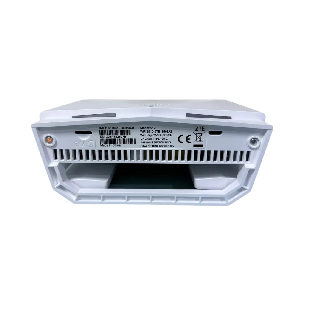 مودم ZTE مدل K12 یکی از خوش قیمت ترین و شیک ترین مودم های موجود از این شرکت هست که آنلاک بوده و تمامی سیم کارت ها را پشتیبانی میکند. تفاوت مودم جیبی و مودم رومیزی در منبع تغذیه است که مودم رومیزی به علت اتصال به برق به وسیله آدابتور امکان جابه جایی در جاهایی که برق موجود نمی باشد را ندارد ولی این مودم به علت داشتن باتری به راحتی مانند مودم جیبی قابل حمل و نقل می باشد. باتری دار بودن این مودم رومیزی از مشخصات بارز این محصول است و ظرفیت باتری این محصول 2600mAh می باشد. پشتیبانی از فناوری LTE CAT4 می تواند به کاربران ،سرعت دانلود 150 مگا بیت بر ثانیه و سرعت آپلود 50 مگا بیت بر ثانیه در حالت FDD-LTE ارائه دهد. حداکثر کاربرانی که قادر به استفاده همزمان، 32 کاربر و یک سیستم از طریق کابل LAN می باشد. این دستگاه دارای ۲ آنتن خارجی می باشد که برای بهتر شدن گیرندگی اینترنت کمک شایانی میکند و دارای آنتن های داخلی مناسبی است و میتوانیم از داخل پنل مودم به پیام های ورودی و خروجی دسترسی داشته باشیم. تفاوت این مودم با k10 در داشتن wifi6 و ظرفیت باتری زیاد است.
